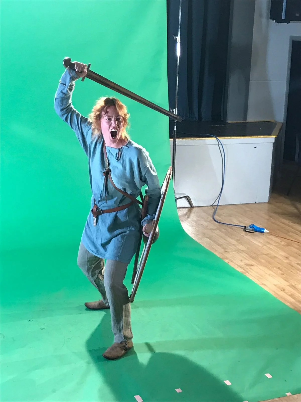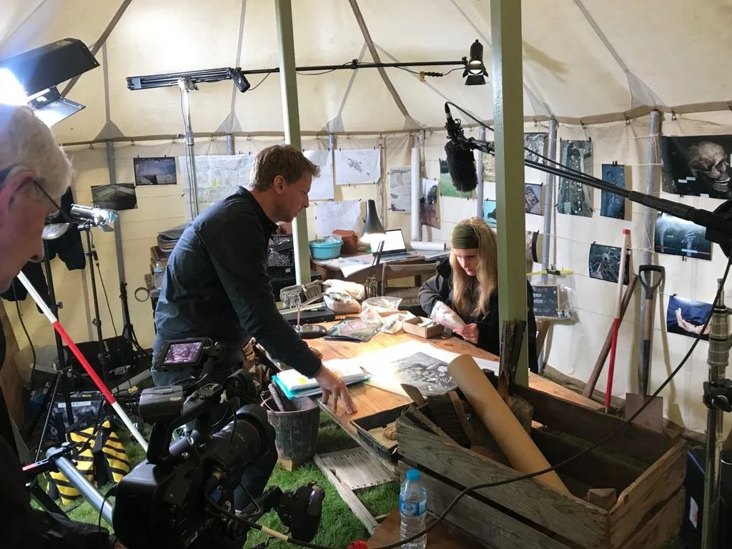 Filming with archaeologist Cat Jarman in our HQ at the Viking Graveyard